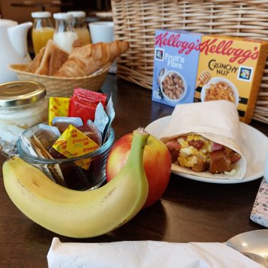 - Beverages; Tea, Coffee, Orange Juice, Apple Juice